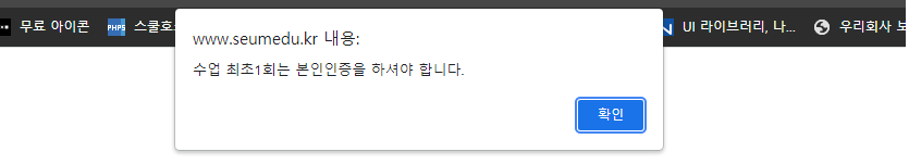 - 중복로그인 또는 다른 브라우져에서 로그인시 아래와 같이 경고창이 뜹니다.